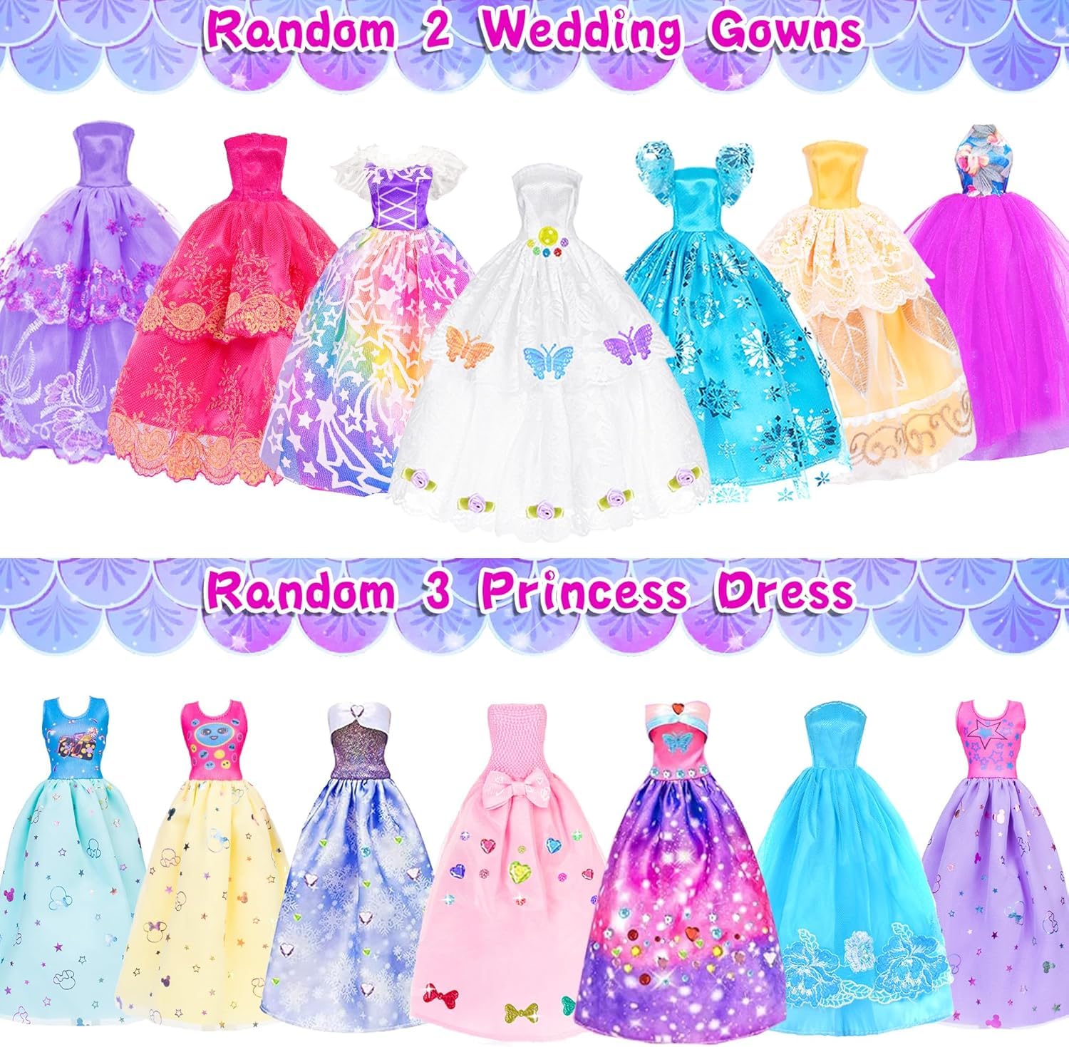 This set encourages creativity and imaginative play while offering display-ready pieces for collectors. The mini wardrobe keeps outfits organized and the variety of clothing and accessories supports styling for everyday looks and special occasions like weddings or parties