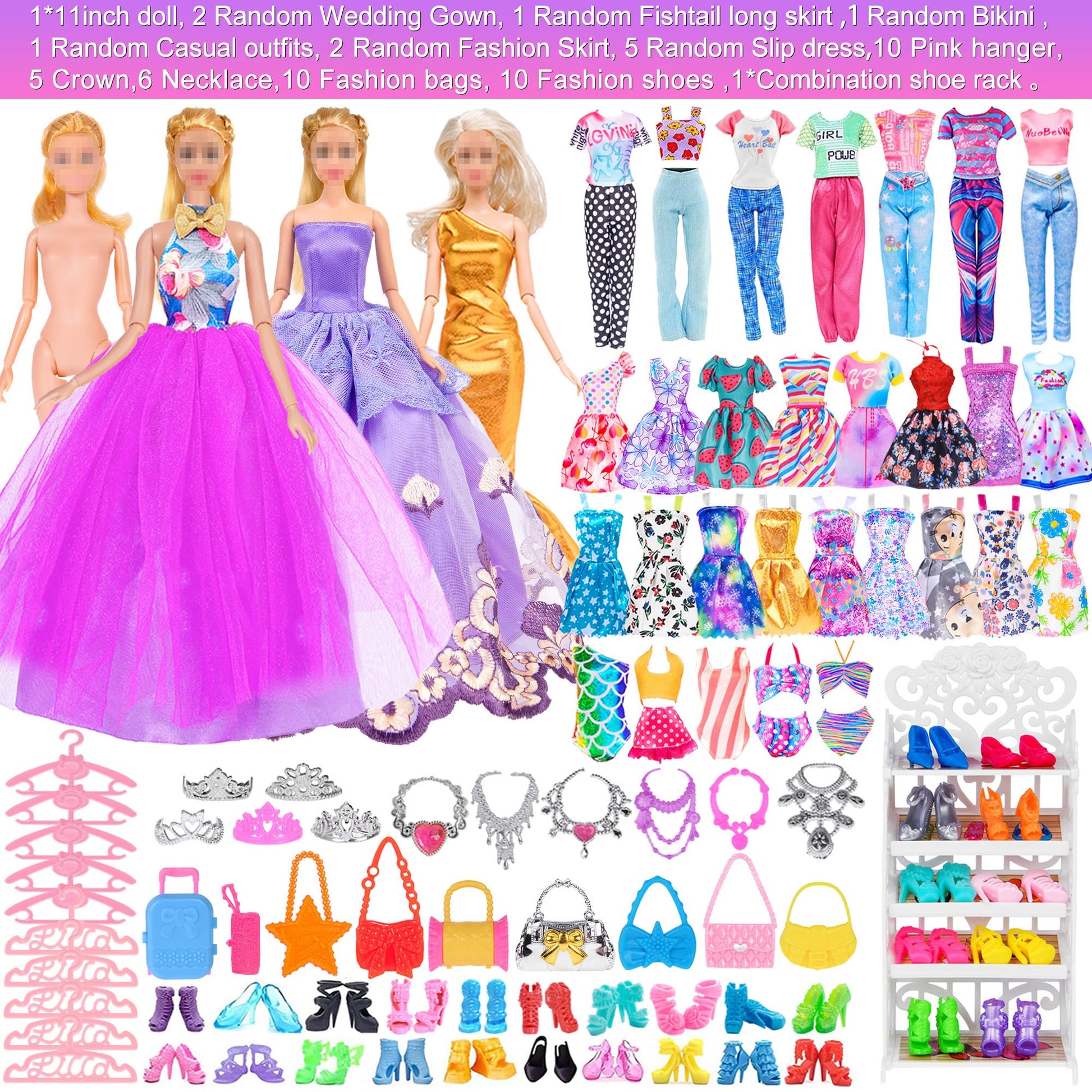 140-piece 11.5-inch doll and closet set — a complete fashion DIY wardrobe kit with a posable 11.5" doll, mini wardrobe, wedding dress, shoes, bags, jewelry, and more. Perfect for creative play, collectors, and doll fashion enthusiasts.