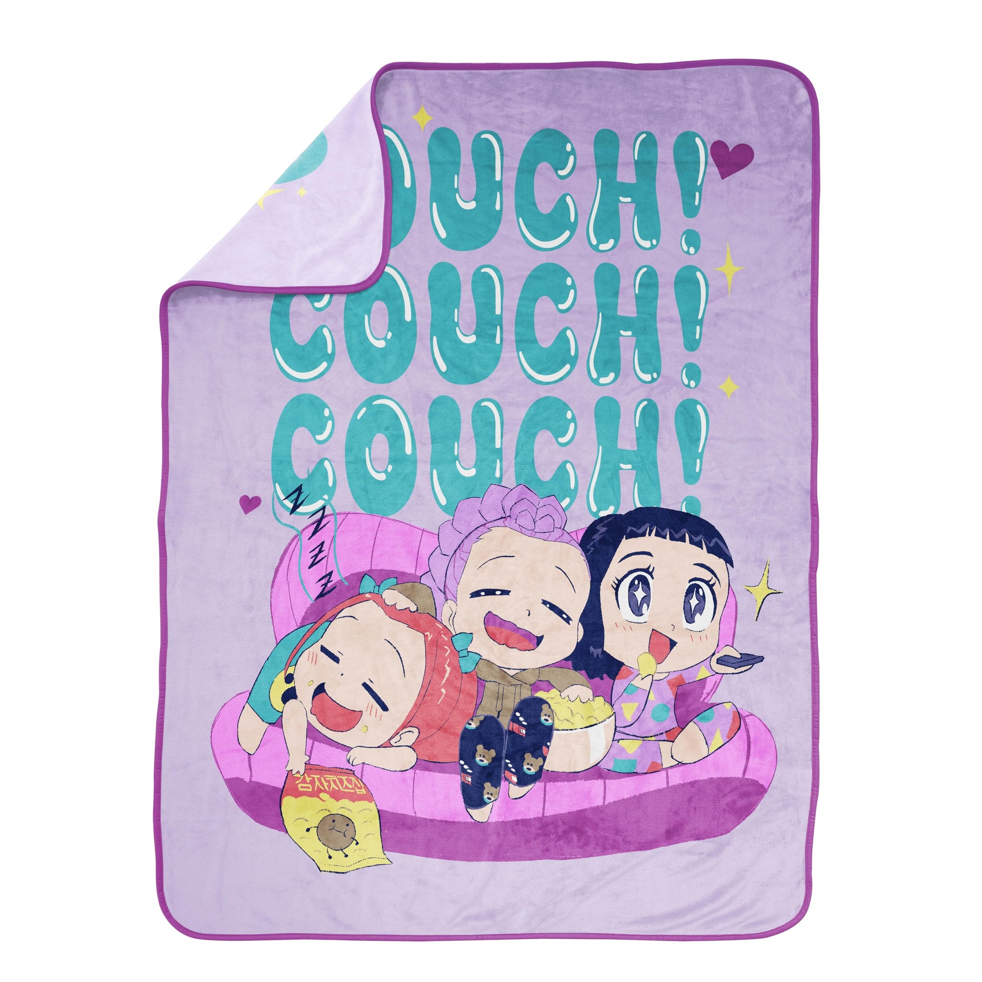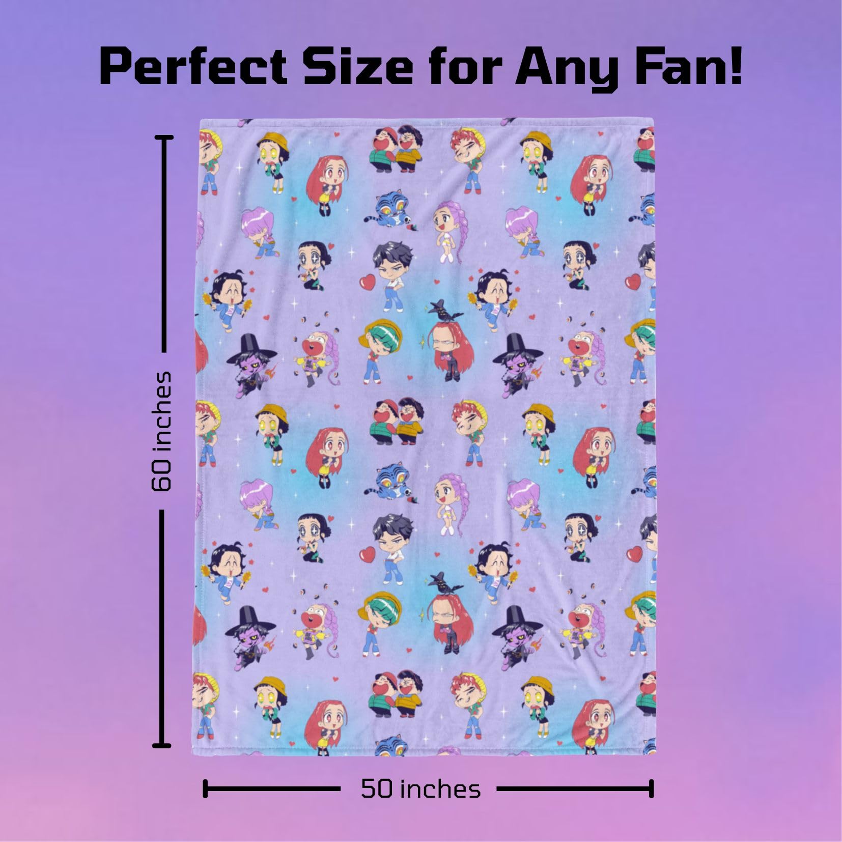 Designed for fans who appreciate the "soft-goth" and "K-pop aesthetic" color palettes, the light purple backdrop provides a perfect contrast to the vibrant, concert-poster-style graphics. Whether you're binge-watching the 2025 cinematic hit, layering your bed for a dorm reveal, or traveling to your next cup-sleeve event, this ultra-soft microfiber fleece is your ultimate fandom companion.