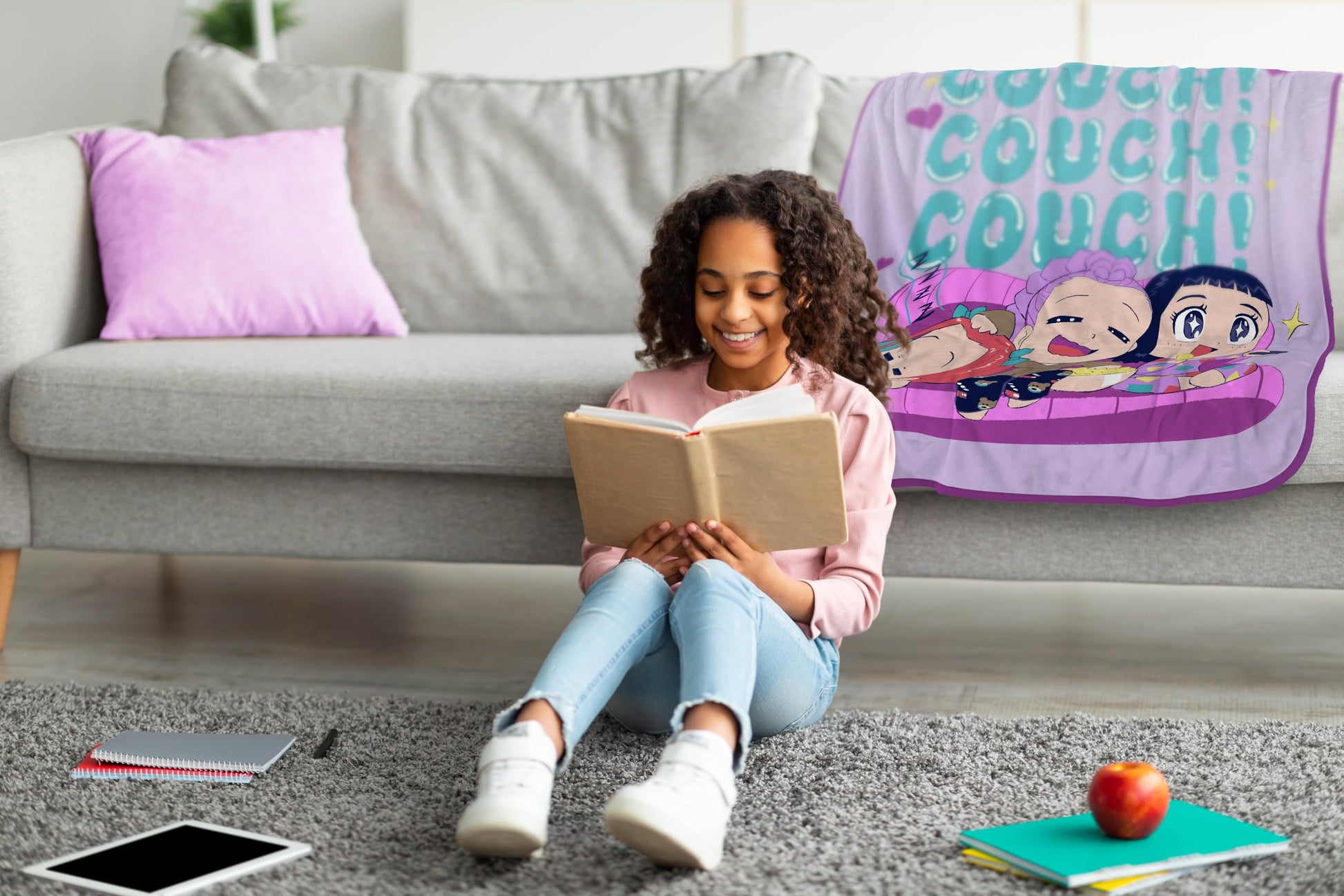 Transform your space into a sanctuary for "The Pride" with this premium Lavender Chibi Plush Throw. Featuring the full roster of the global phenomenon K-Pop Demon Hunters, this blanket brings together the fierce energy of Huntrix (Mira, Zoey, Rumi) and the dark charisma of the Saja Boys (Jinu, Mystery, and the squad). Reimagined in adorable, high-definition chibi art, your favorite idols—and their "derpy" spirit companions—are ready to keep the demons at bay while you lounge.