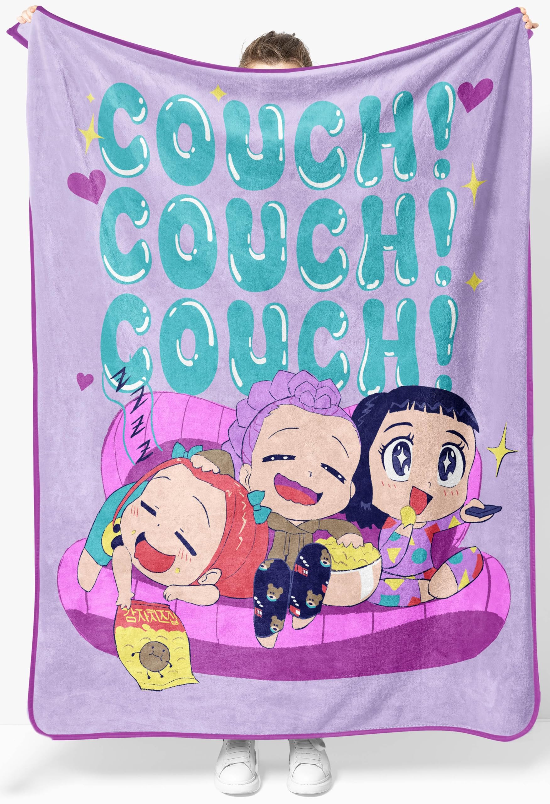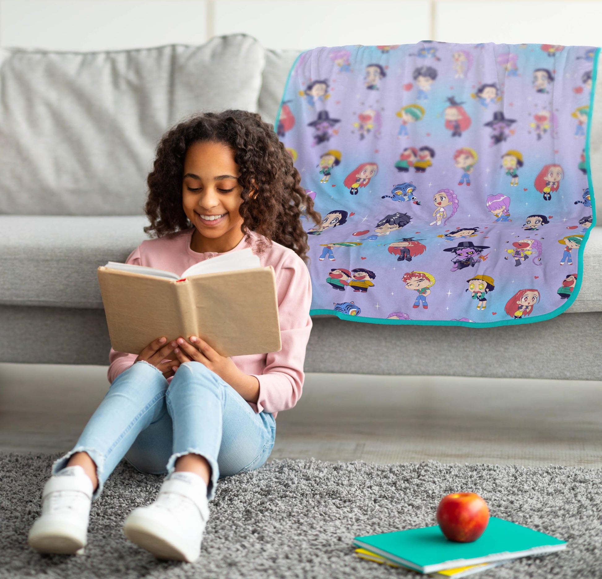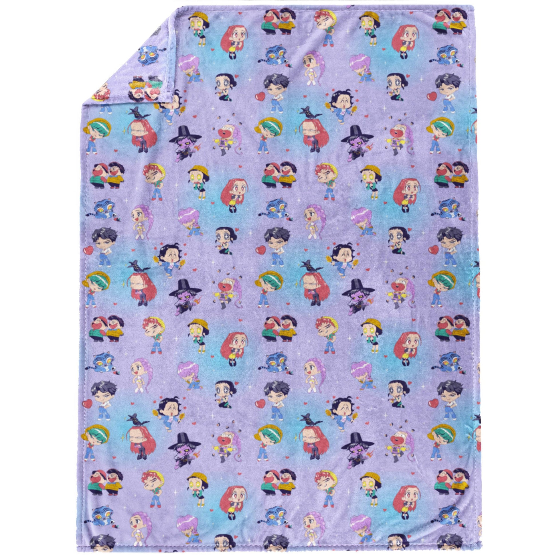 Saja Boys & Huntrix Chibi Plush Throw | K-Pop Demon Hunters Lavender Aesthetic Dorm Blanket
