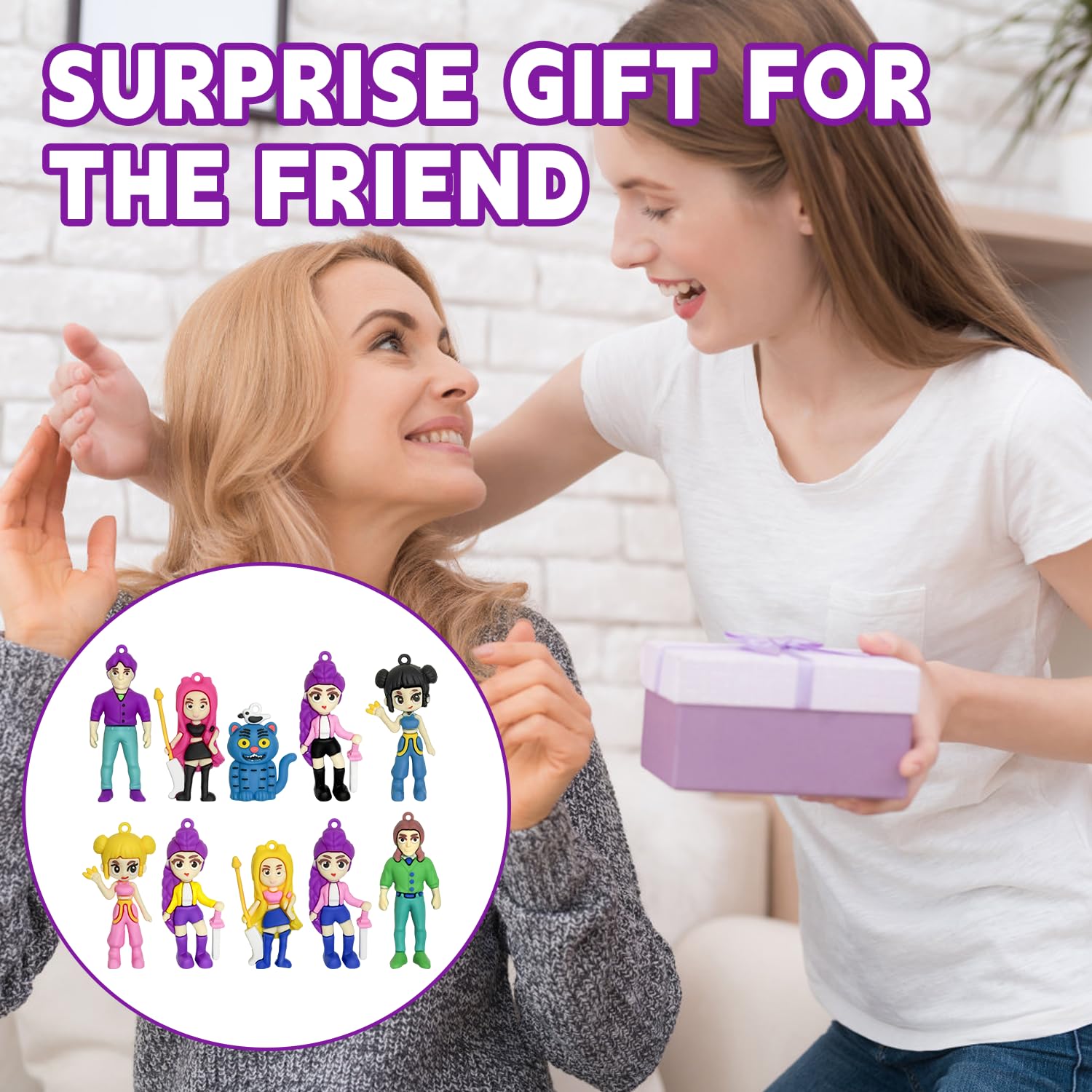 Bring the world of K-Pop Demon Hunters to your space with this 10-Piece Huntrix Action Figure Set. Designed with anime-inspired features and Korean idol aesthetics, each figure captures the bold style and personality fans love. These Demon Hunters dolls are ideal for desktop decoration, shelf displays, or creative figure arrangements at home or in the office.